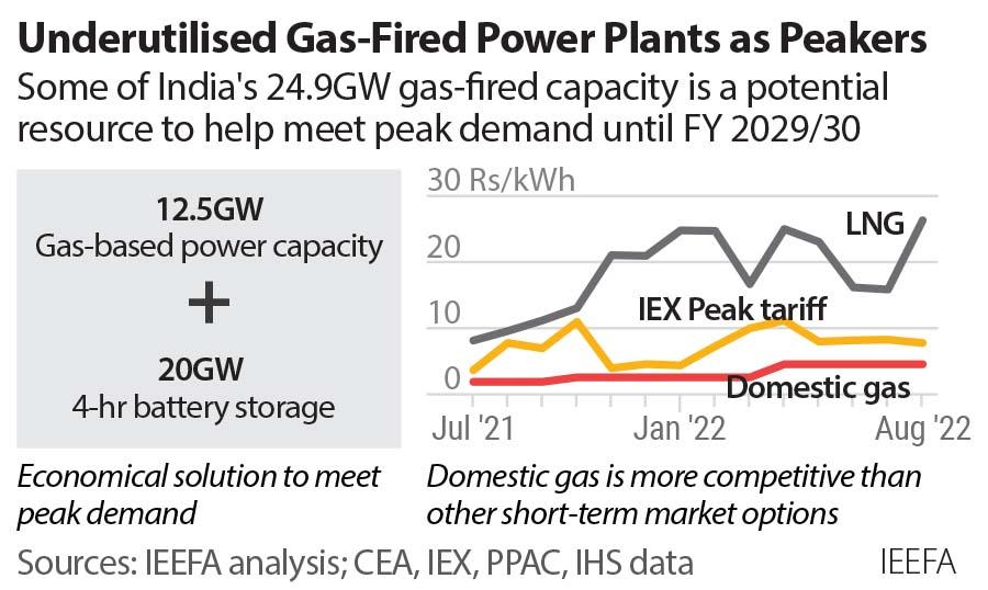 Using some of India’s existing gas-based power capacity as peaking plants would be more economical than other options in the short-term market for peak power supply.