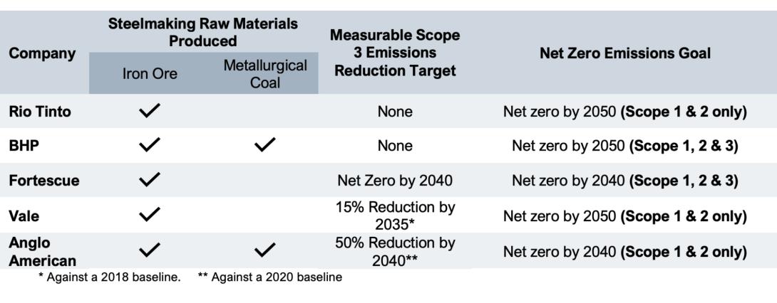 With a target to reach net zero Scope 3 emissions by 2040, Fortescue clearly leads in ambition. The other major iron ore producers need to increase their intent to avoid investor pushback.