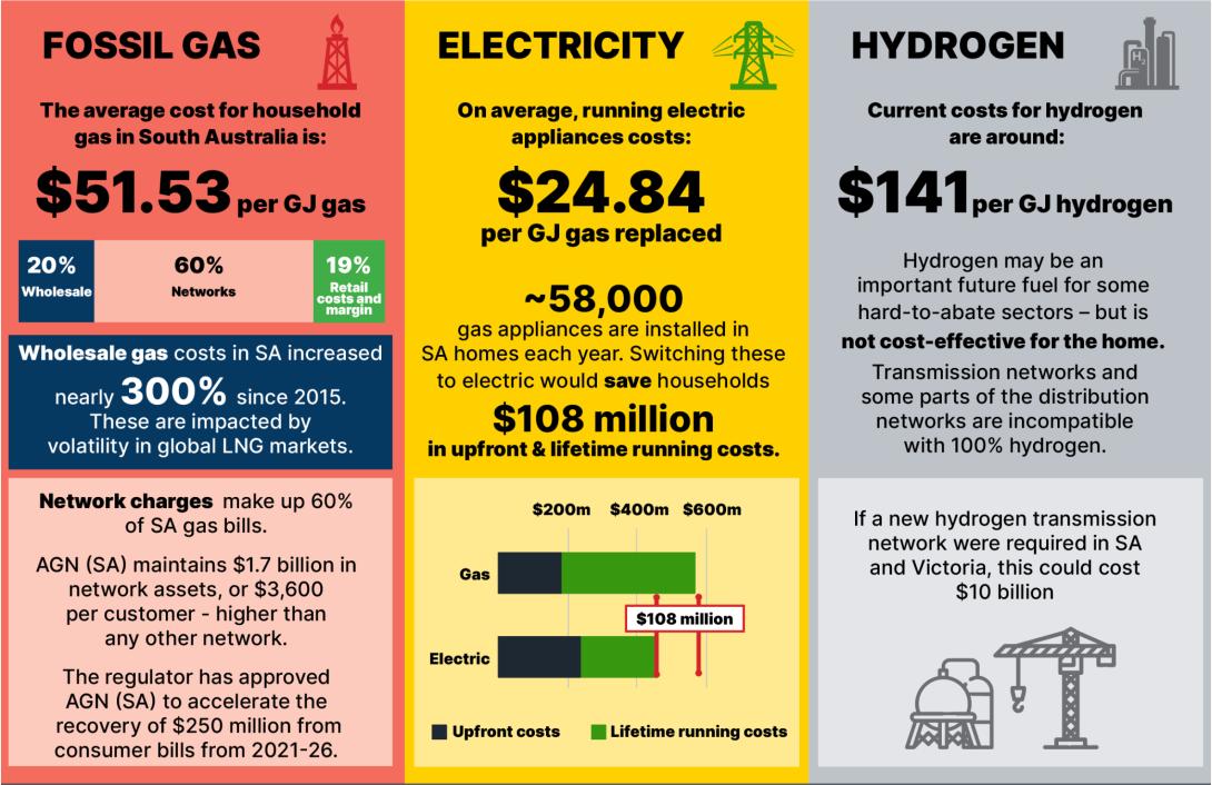 See the fact sheet: As gas bills rise in South Australia, all-electric homes are the most cost-effective solution