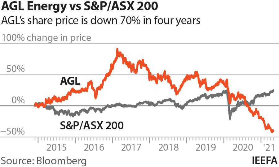 22 July 2021 (IEEFA Australia): In failing to realise its early green ambition AGL Energy, one of Australia’s biggest electricity generators and retailers wiped over 70% off its market value in just four years, destroying A$12 billion in shareholder wealth, finds a new report by the Institute for Energy Economics and Financial Analysis (IEEFA).