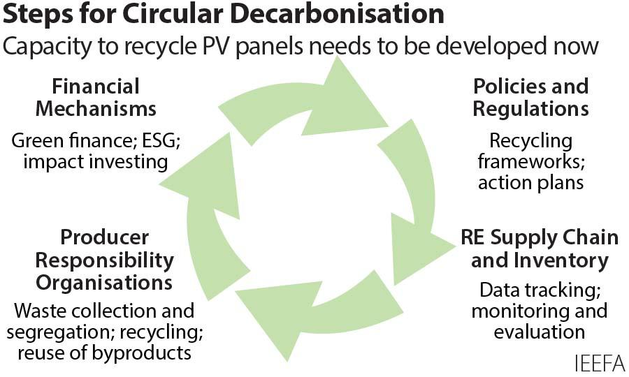 The report notes India does not yet have a dedicated renewable waste management and recycling policy and calls for a national framework to be developed for domestic recycling of solar PV in particular.