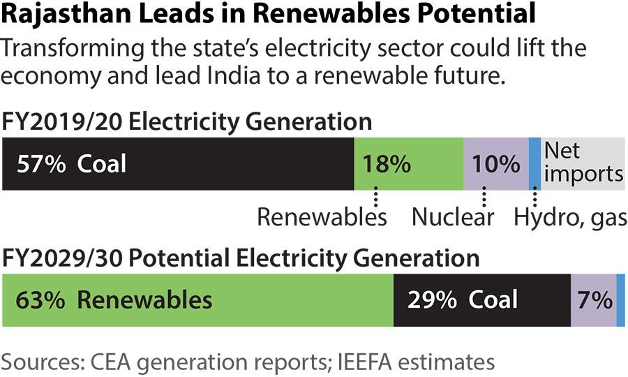 Currently Rajasthan depends on electricity imported from other states given a power deficit during peak daytime hours. With an increase in renewable energy investment the state could become a net exporter of electricity in the coming decade, according to the report.