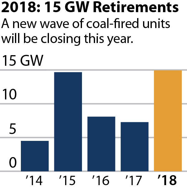 In 2018, a likely doubling over 2017 in the amount of coal-fired capacity to be retired.