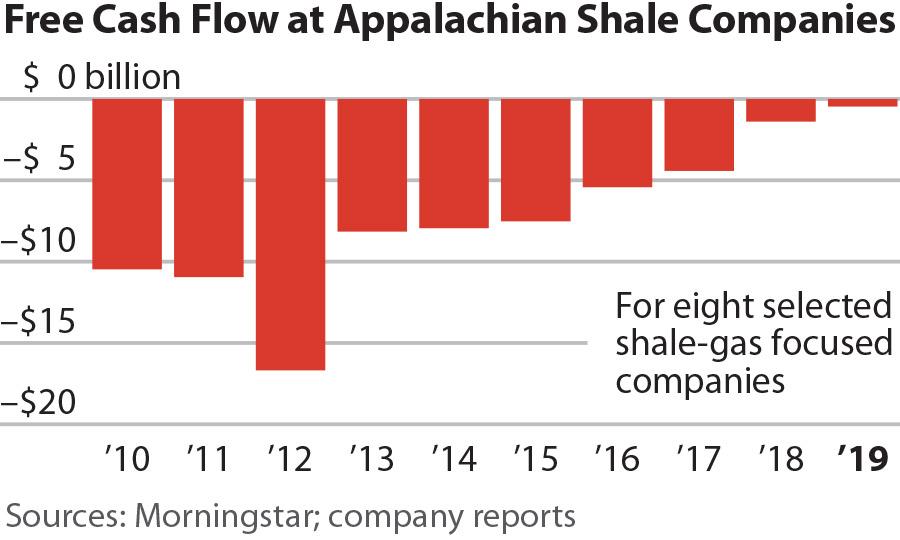 Faced with persistently low gas prices, these eight companies continued to struggle financially in 2019, recording negative cash flows of $427 million in the fourth quarter alone.