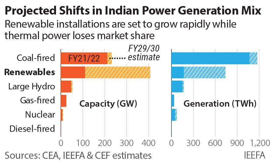 IEEFA and CEF estimate that renewable energy capacity will reach 405GW in FY2039/30, putting India on track to surpass its target of 50% of its energy from non-fossil fuel sources by 2030.