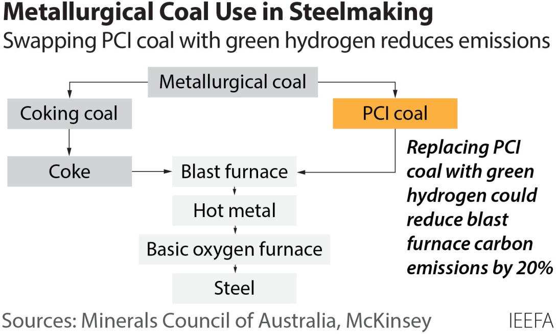 10 May 2022 (IEEFA): Steel-making companies are exploring replacing Australia and Russia’s increasingly expensive and supply-challenged PCI coal with green hydrogen as an early pathway to reducing emissions in the steel industry, finds a new report from the Institute for Energy Economics and Financial Analysis (IEEFA).