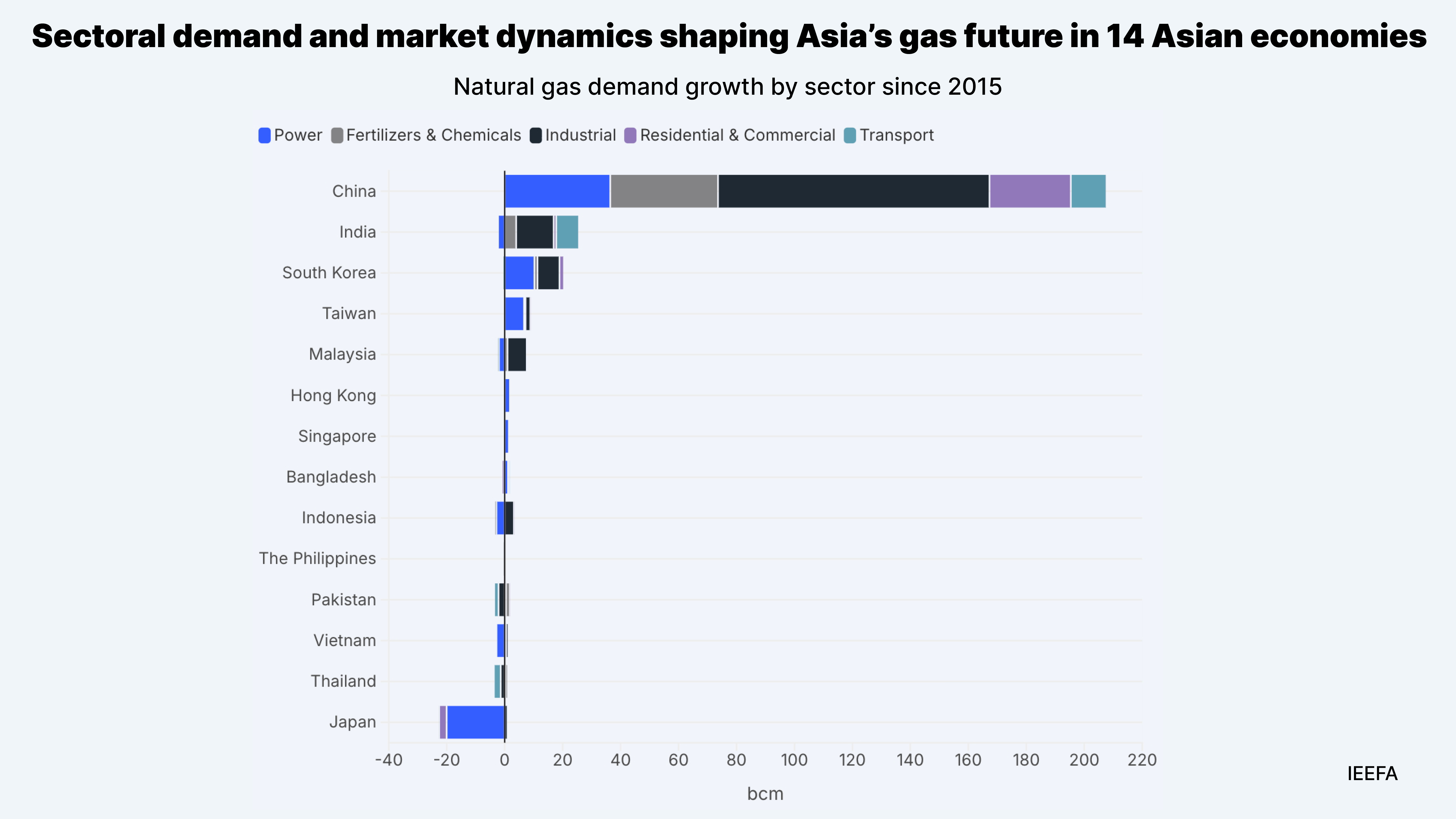 In the power sector, falling gas demand in Japan, India, Indonesia, Malaysia, Vietnam, and the Philippines since 2015 was enough to offset growth in all other countries, excluding China.