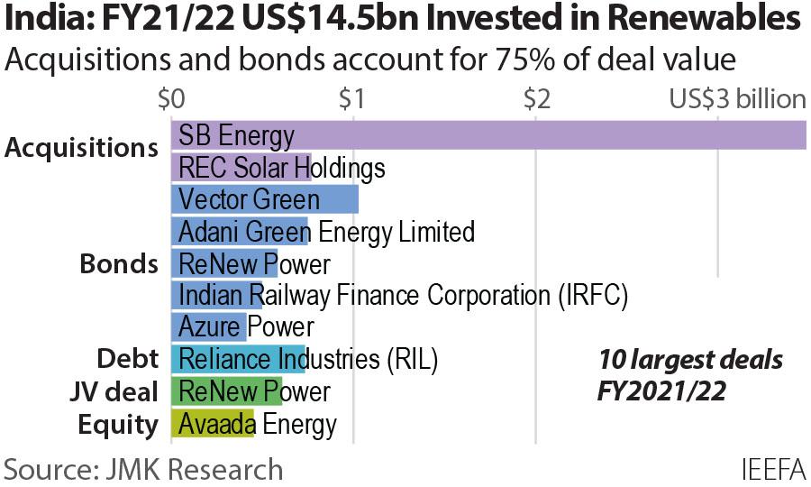 The largest deal was SB Energy’s exit from the Indian renewables sector with a sale of assets worth $3.5 billion to Adani Green Energy Limited (AGEL). Other key deals included Reliance New Energy Solar’s acquisition of REC Solar holding assets and a host of companies like Vector Green, AGEL, ReNew Power, Indian Railway Finance Corporation and Azure Power raising money in the bonds market.