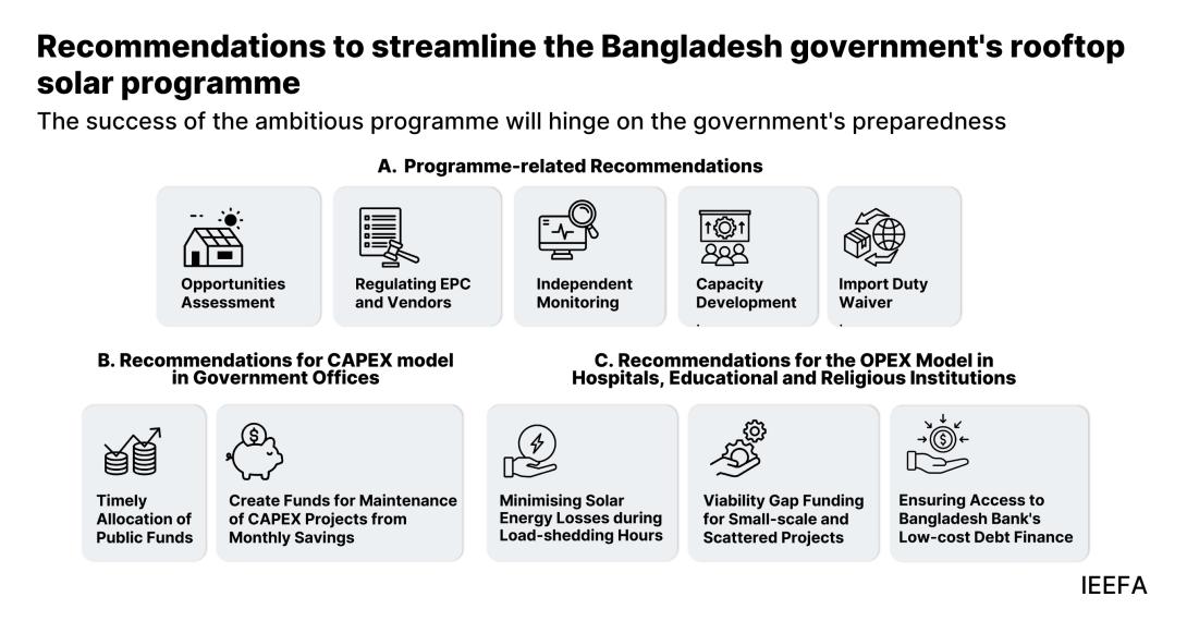 However, the note questions whether the target is overly ambitious, given that Bangladesh installed rooftop solar capacity of only 245MW between June 2008 and June 2025. This requires the country to ramp up efforts by more than 12x to achieve 3,000MW by December 2025.