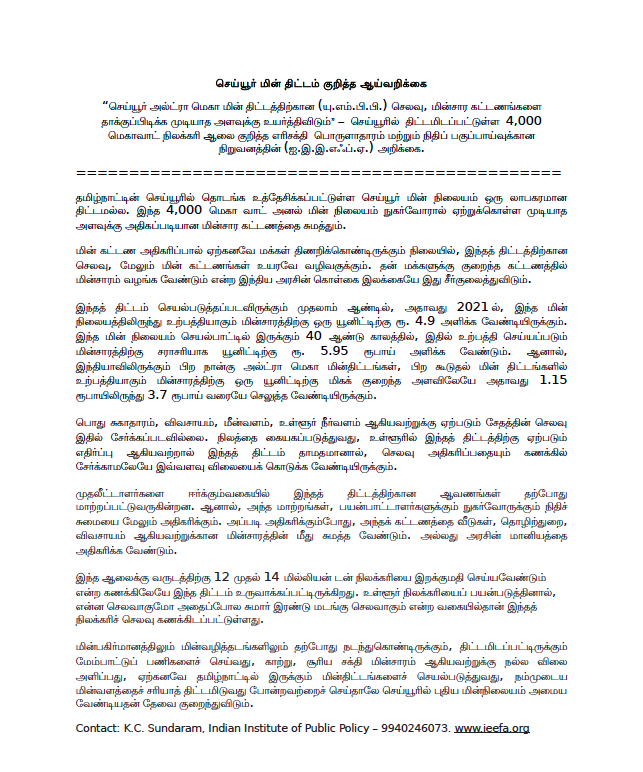 Tamil Translation of IEEFA Report on Cheyyur Project
