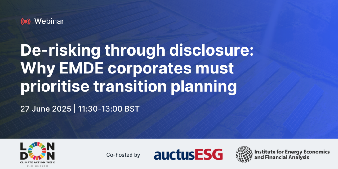 In response, and under the aegis of London Climate Action Week 2025, IEEFA is hosting a webinar titled ‘De-risking through disclosure: Why EMDE corporates must prioritise transition planning’, to explore how credible transition planning can unlock sustainable capital flows for the Global South.