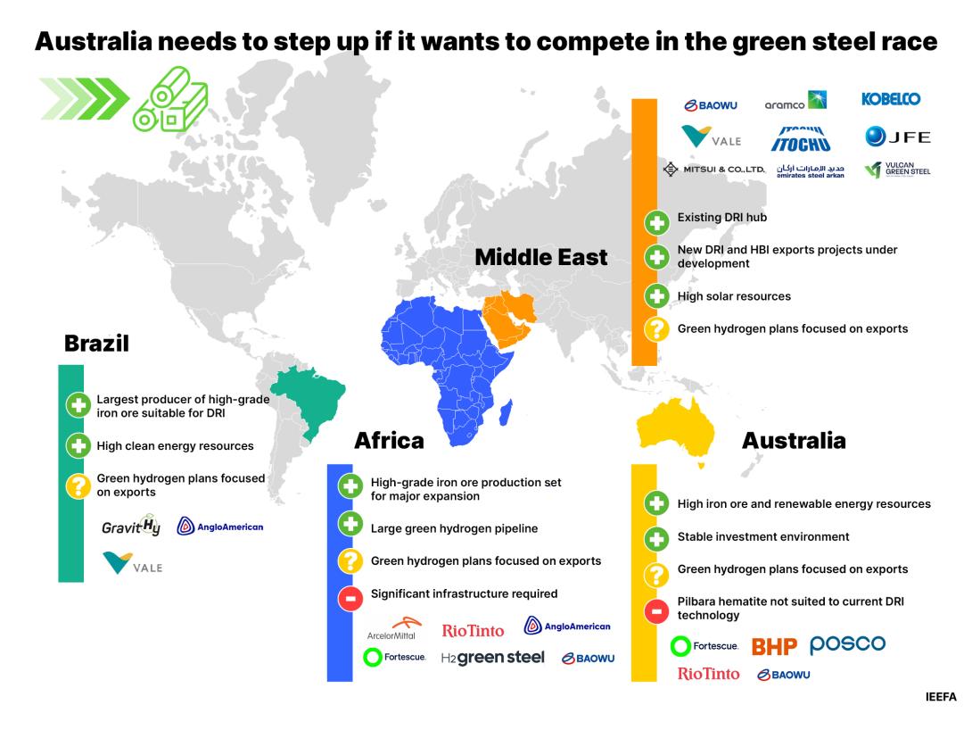 Australian iron ore faces growing competition in the emerging green iron market from countries and regions that produce higher-grade ore better suited to non-coal-based steelmaking.