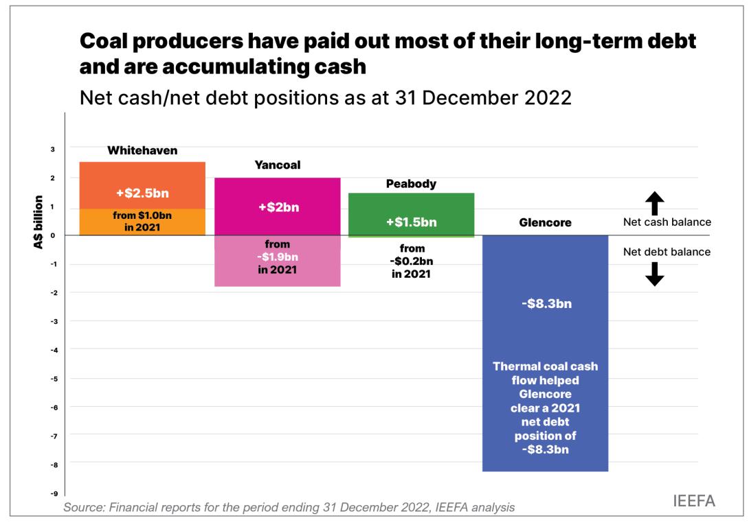 A majority of coal producers have now paid out most of their long-term debt and are sitting on huge cash piles. In 2022, miners generally reversed a net-debt position to be net cash positive.