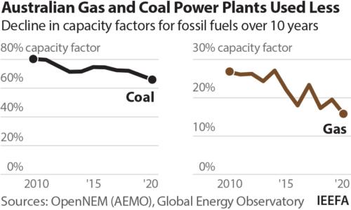 Most gas- and coal-fired power plants in Australia, the UK, the U.S. and China are being operated less and less.