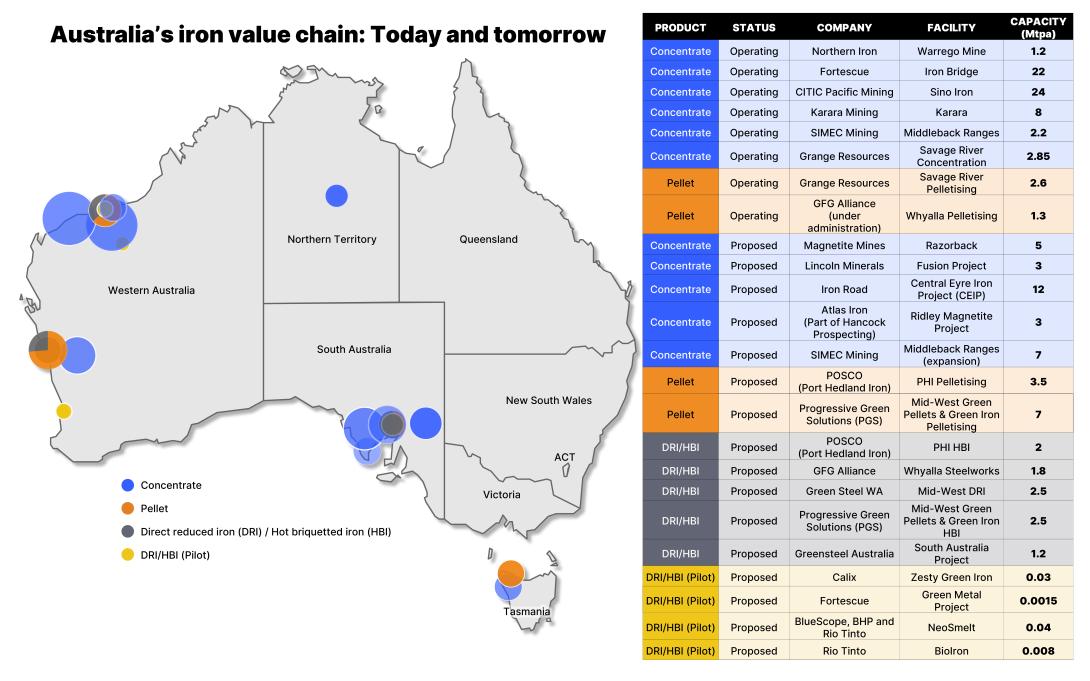 Australia has sufficient iron ore concentrate to begin producing green pellets and, subsequently, green iron. Additional supply will also be needed, and this is currently under development.