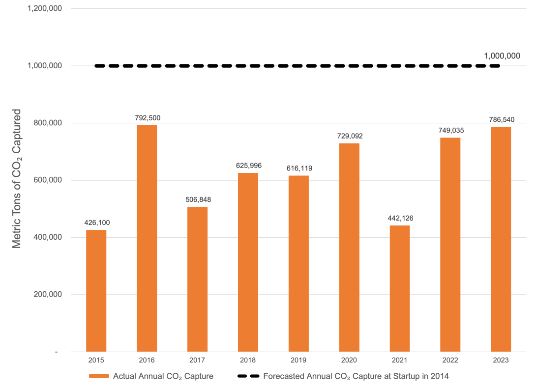 As can be seen in Figure 1, BD3 has never achieved the stated goal of capturing 1 million metric tons of CO2 each year.