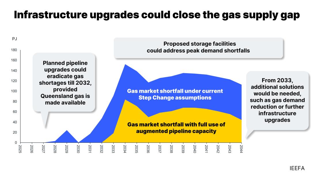Planned upgrades to infrastructure carrying Queensland gas would cover the annual gas shortages predicted in Australia's southern states till 2033, buying governments time for gas demand reduction measures that would address ongoing shortfalls beyond 2033.