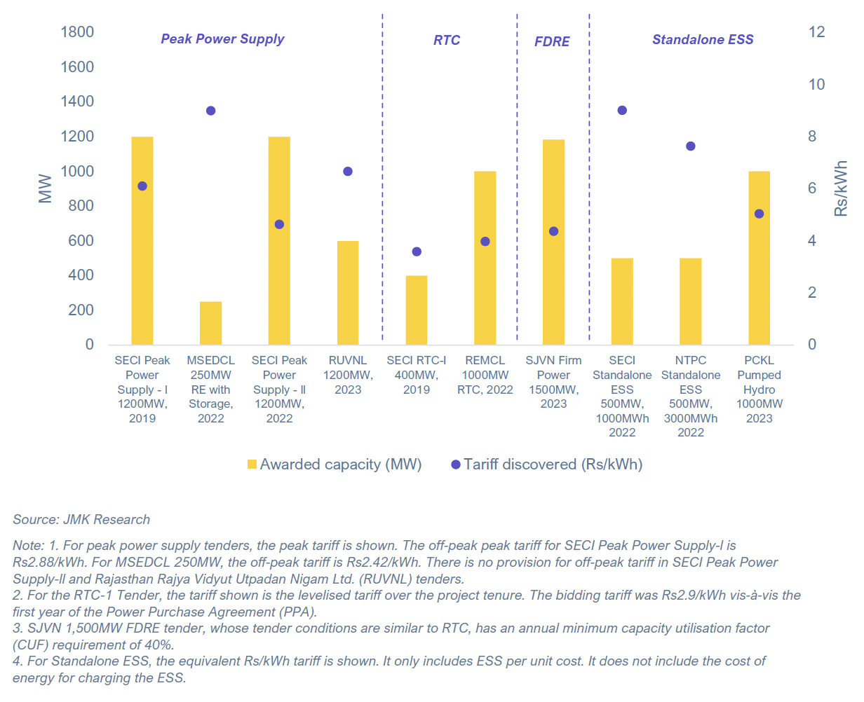 Figure 1: Auction Results of Major Grid-scale ESS Tenders in India