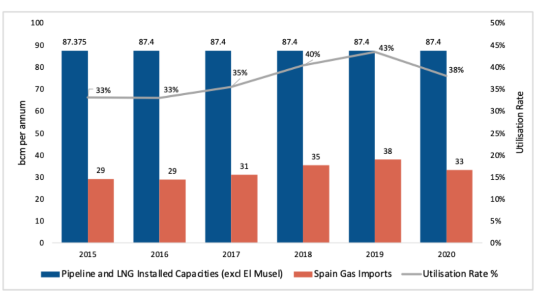 Over the years, Enagás has used “security and diversity of supply” as an excuse for building out or expanding liquefied natural gas (LNG) regasification terminals, natural gas pipelines, and gas storage facilities. However, these investments resulted in very low utilisation rates for gas assets, as well as some of the highest gas bills in Europe. Gas demand in Spain has declined since 2008, but Spanish consumers are still burdened with incredibly high rates for unused infrastructure.