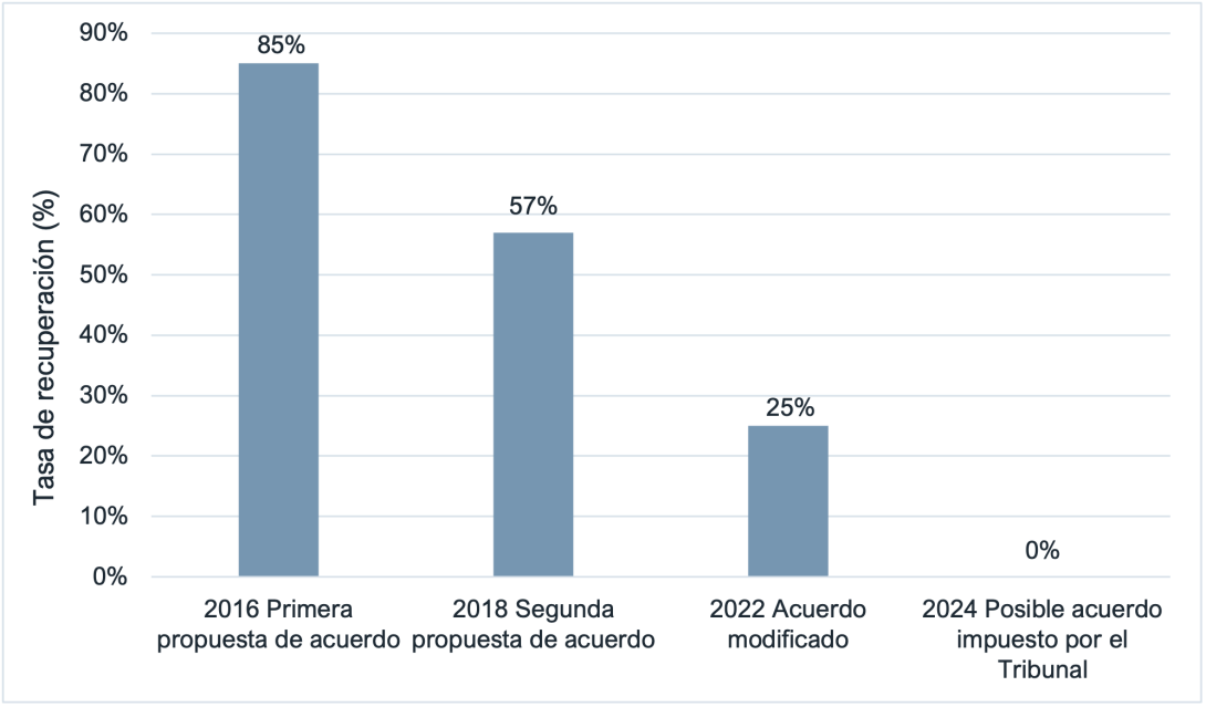 Las estimaciones de las tasas de recuperación propuestas por los acreedores han caído constantemente desde 2017.