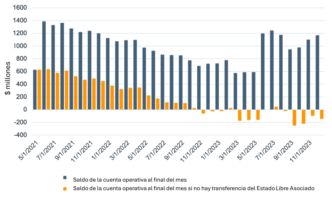 Figura 1: Saldo de la cuenta operativa de la AEEPR con y sin transferencias del Estado Libre Asociado