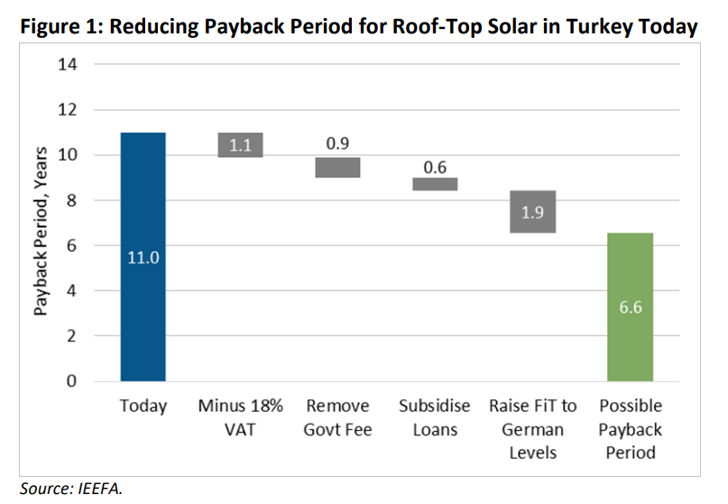 All these motives exist in the Turkey context, where a recent economic slowdown has reduced the availability of public funds for energy sector investment, and depreciation of the currency has increased the cost of hard coal imports, jeopardising a previous pipeline of new coal-fired power plants. What is more, Turkey has among the best solar resources in Europe, far superior to market leaders such as Britain and Germany.