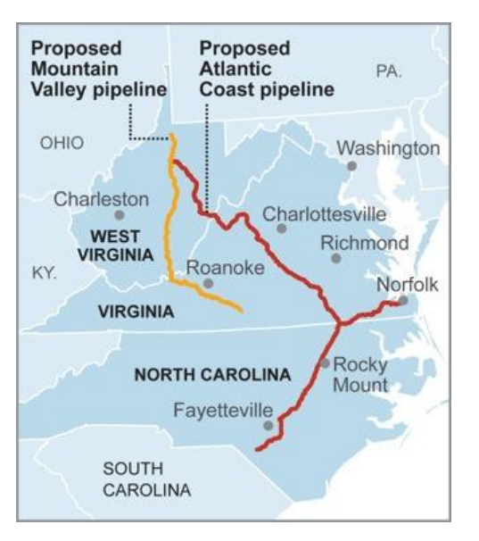 The Federal Energy Regulatory Commission is considering applications for construction of two major natural gas pipelines that would run from West Virginia into North Carolina and Virginia: the Atlantic Coast Pipeline and the Mountain Valley Pipeline.