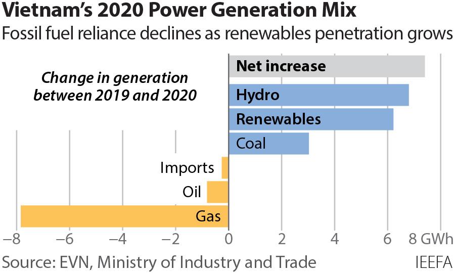 In 2020, EVN benefited from a cost-friendly generation mix thanks to the better availability of inexpensive hydropower, a scenario that is welcomed but not guaranteed on a recurring basis. This positive swing is a reminder of the sensitivity of EVN’s financial profile to volatile hydropower sources. Nevertheless, EVN’s ability to benefit from a more cost-effective generation mix in 2020 with more renewable energy, including hydro and solar power, and less fossil fuel-based electricity has strategic implications for the planning of Vietnam’s power system. As more variable renewables come online, the role and dominance of coal and gas-fired power in the country’s energy mix faces inevitable adjustments. This shift will require a thorough review of the economic assumptions that have driven commitments to large-scale pipeline projects that cannot be dispatched flexibly.