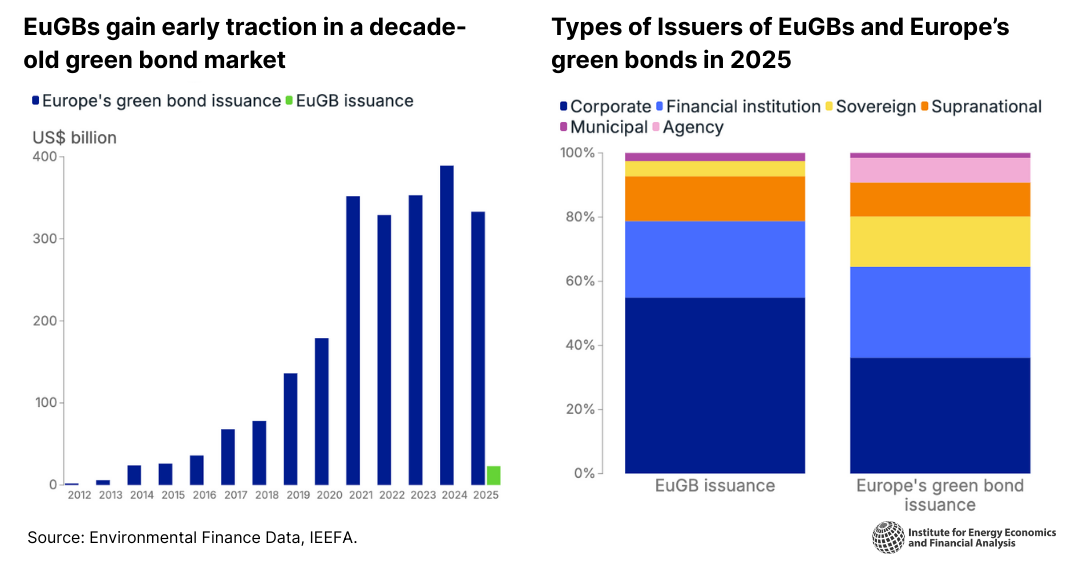 Just over one year after the European Green Bond Standard (EUGBS) — a landmark regulatory framework for sustainable bonds — took effect in late 2024, more than €22 billion in issuances carry the “European Green Bond” or “EuGB” label. That means these bonds meet requirements including EU taxonomy-aligned use of proceeds, mandatory external review and standardised reporting. Early momentum is encouraging, setting the scene for enhanced credibility and transparency in the green bond market. Yet as investments required to drive the energy transition accelerate, the standard captures only a small fraction of reported taxonomy-aligned investment thus far, signalling significant room for growth.