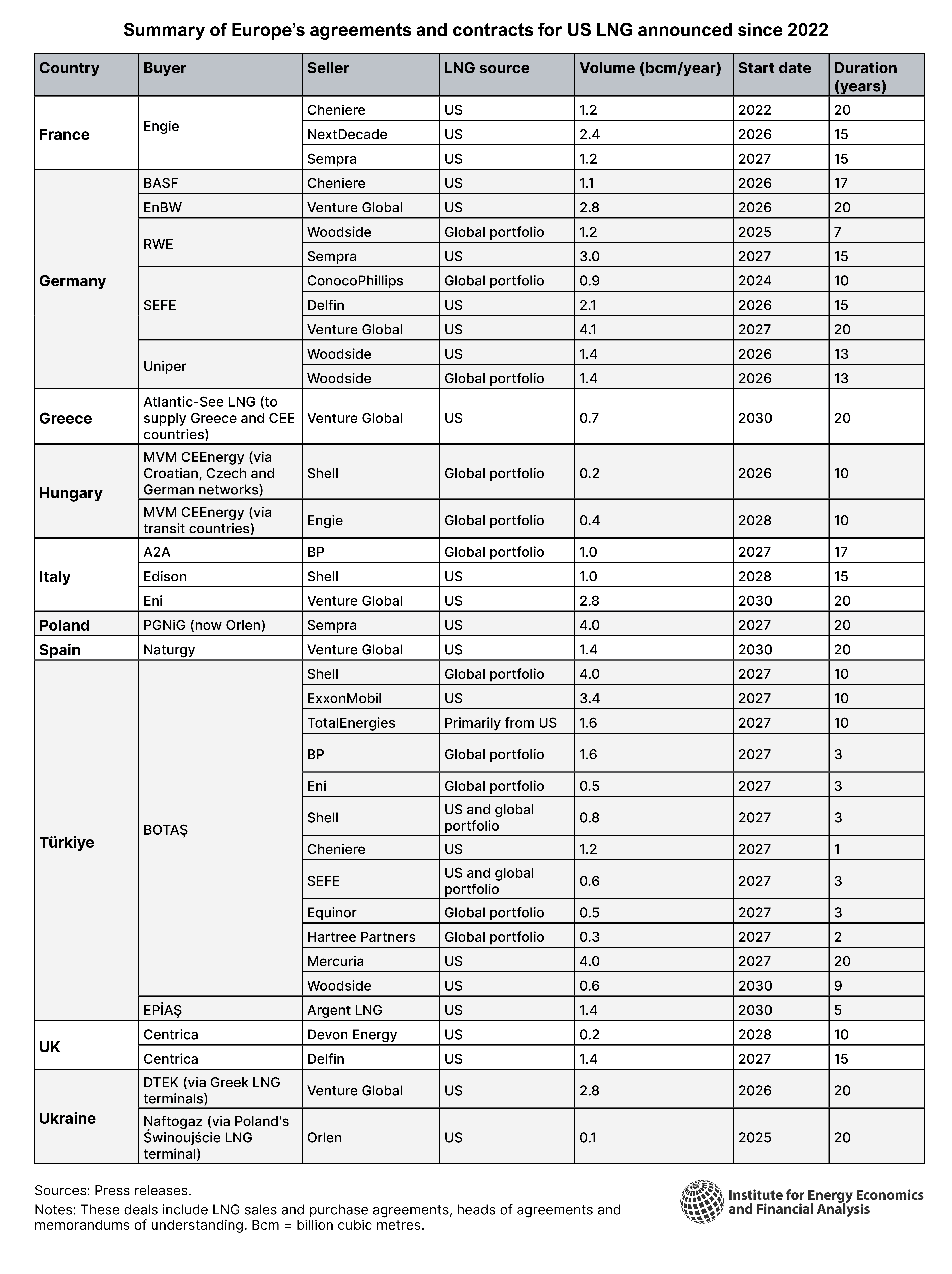 As part of the trade deal announced between the EU and US in July 2025, the EU intends to buy USD750 billion of US energy by 2028. The deal effectively ties the EU’s energy supply to one seller, risking energy security and jeopardising gas reduction plans.