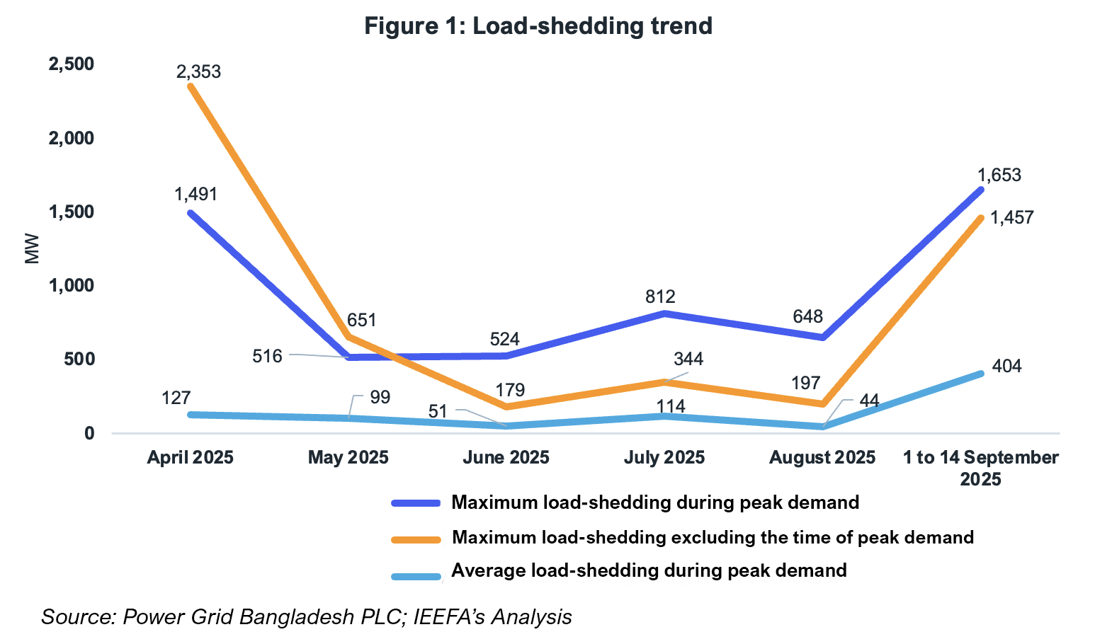 However, frequent rains kept temperatures lower than usual, reducing the use of energy-intensive appliances. As a result, peak power demand only reached 17,099MW on 23 July 2025. Yet, during the first two weeks of September, Bangladesh was hit by fuel supply shortages, forcing an increase in load-shedding. This underscores how the country’s heavy reliance on imported fossil fuels has made its power system fragile.