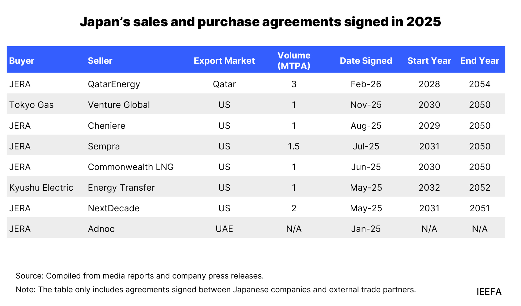 In February 2026, power utility JERA agreed to buy 3 MTPA of LNG from QatarEnergy through 2054, marking the largest deal with a Japanese offtaker in a decade. While destination restrictions in Qatari contracts led Japanese buyers to terminate previous deals, this latest agreement likely contains terms for destination flexibility and diversion rights.
