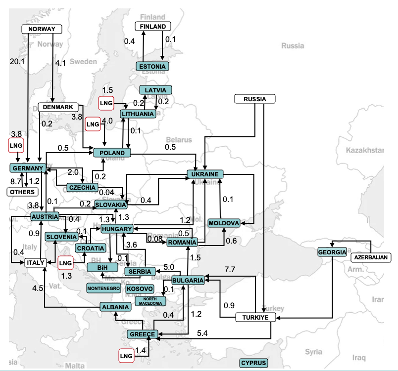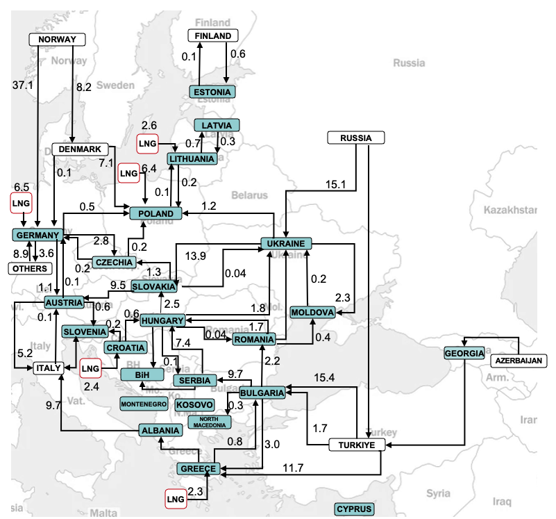 Central and Eastern European countries have diversified their sources of gas supply. Gas has flowed to demand points even after the end of Russian pipeline gas transit via Ukraine on 1 January 2025.