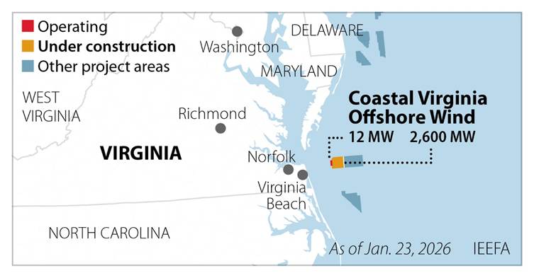 The administration’s order threatens to prevent power from flowing into its grid early this year and for the project to be fully operational by the end of 2026, the company said. The three-week stoppage cost more than $5 million a day, with further delay to lead to “far greater harm to the project.” Dominion, which now shares ownership of CVOW with infrastructure investment firm Stonepeak, pointed out that $8.9 billion already has been invested in CVOW, which has a total projected cost of $11.2 billion. Those costs will not disappear if the project is cancelled, which would force customers to pay for power they are not getting.
