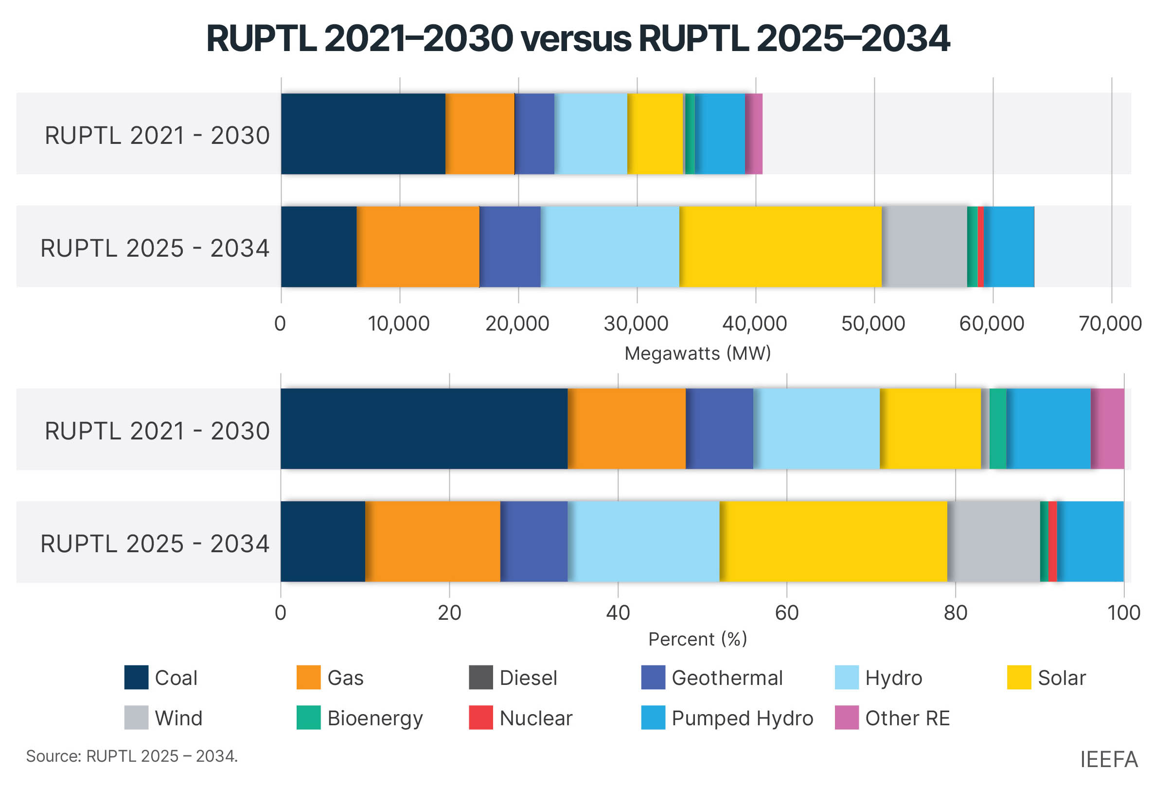 Instead of further locking into gas and coal, Indonesia should prioritize solar and wind energy expansion, which have proven to be rapidly deployable and scalable domestically and globally. Furthermore, during RUPTL Phase Two in 2030–2034, in addition to solar and wind, implementation plans should focus on procuring more hydropower and geothermal resources, ensuring a stable, diversified baseload profile to complement intermittent renewables.