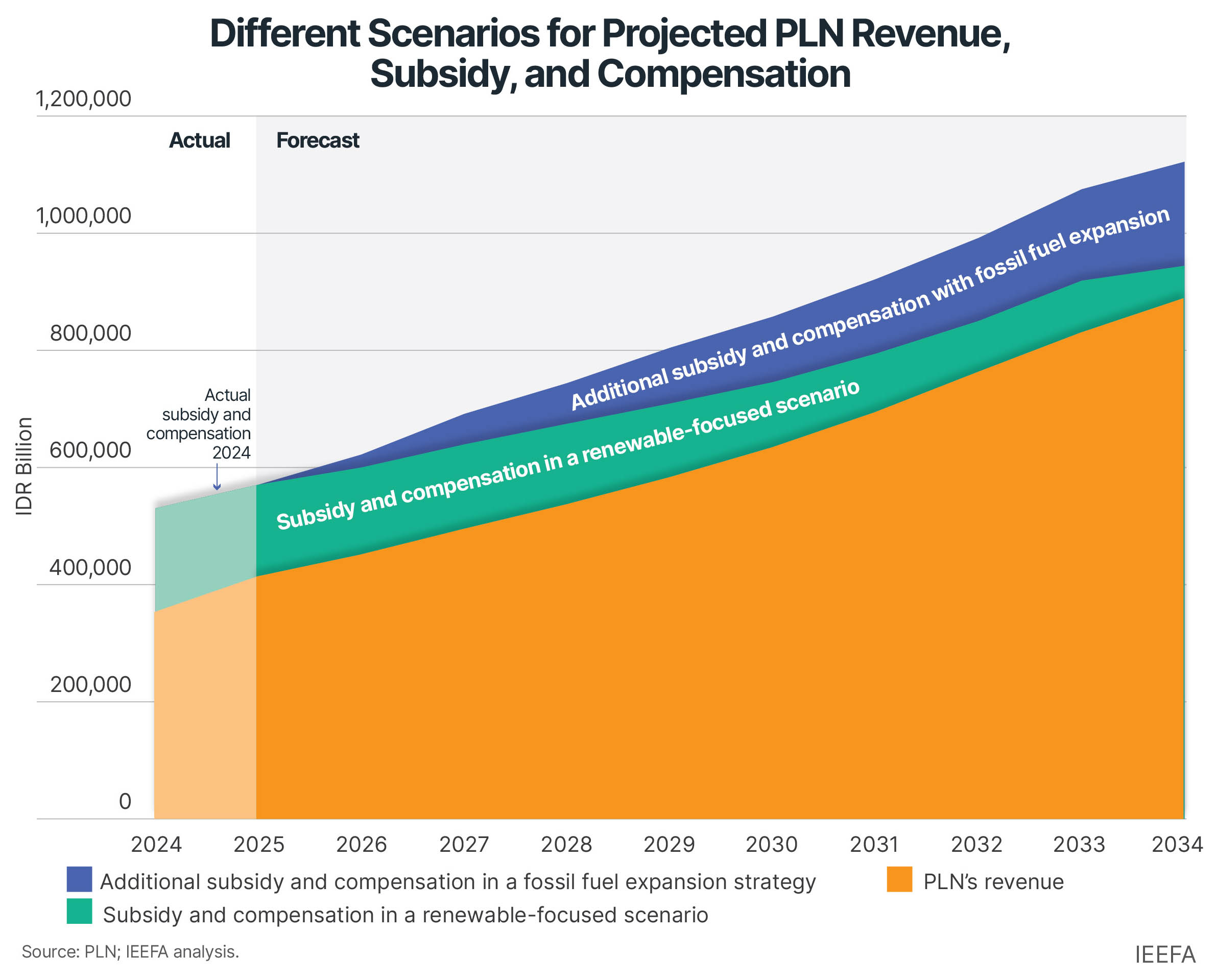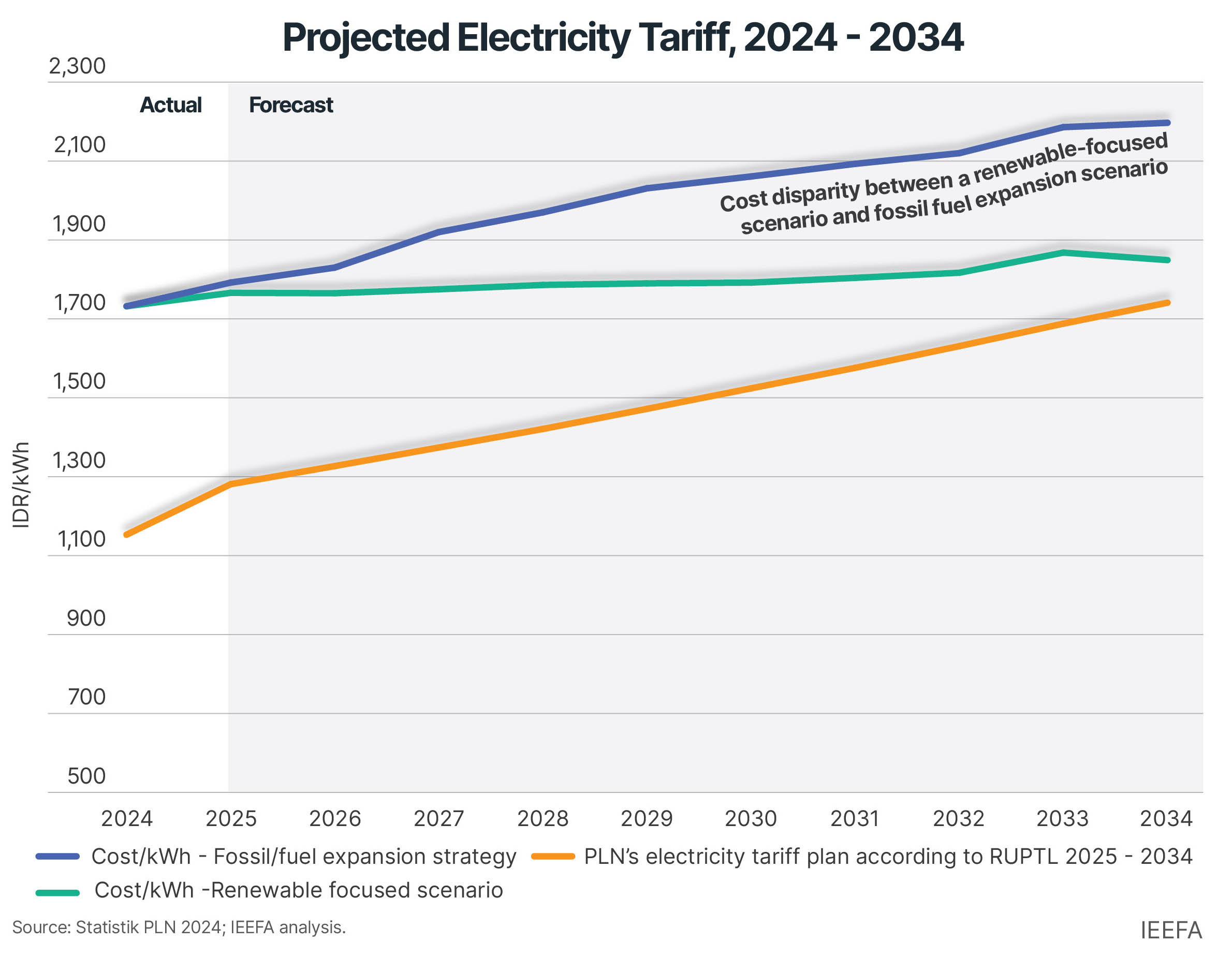 If Indonesia expands its gas plant capacity, this cost disparity could increase, potentially doubling the actual generation cost by 2034 compared to current levels.